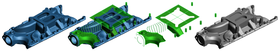 Scan-to-CAD는 정확하고 편집 가능한 CAD 모델을 신속하게 생성해야하는 제품 설계자를 위한 고급 역설계 모듈입니다. 이 모듈을 사용하면 스캔 단면 위에 직접 2D 스케치를 할 수 있고, 프로젝트 내에서 완전한 3D 모델을 손쉽게 생성할 수 있습니다.