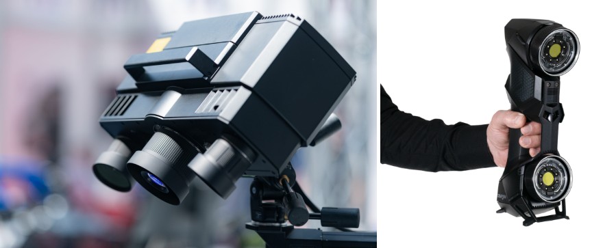 광학식(블루라이트)은 삼각대를 설치하고 스캐너를 장착해야 했으며, 광택 표면에는 분말을 도포해야 했습니다.